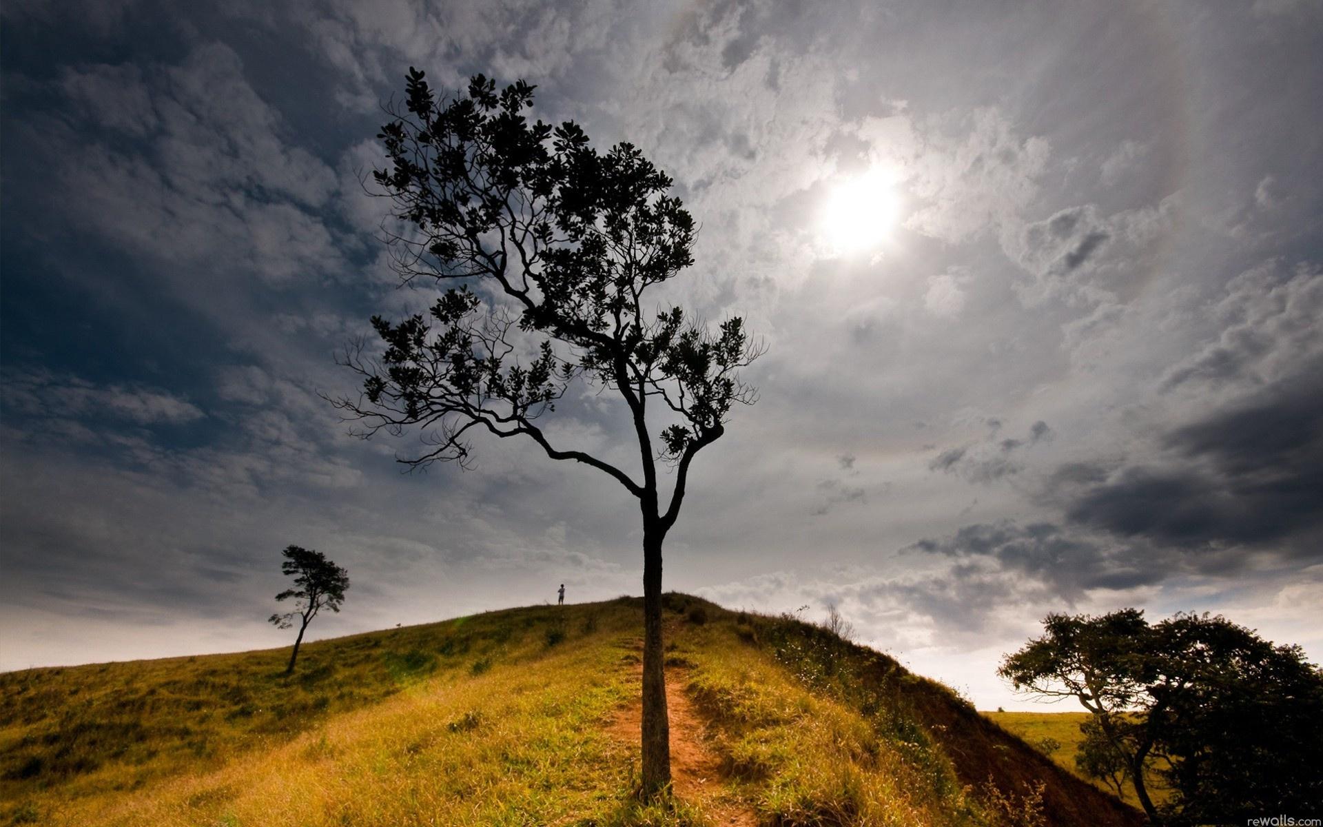 Деревья, холм, небо, солнце обои для рабочего стола, картинки, фото, 1920x1200. | |||||||||||||||||