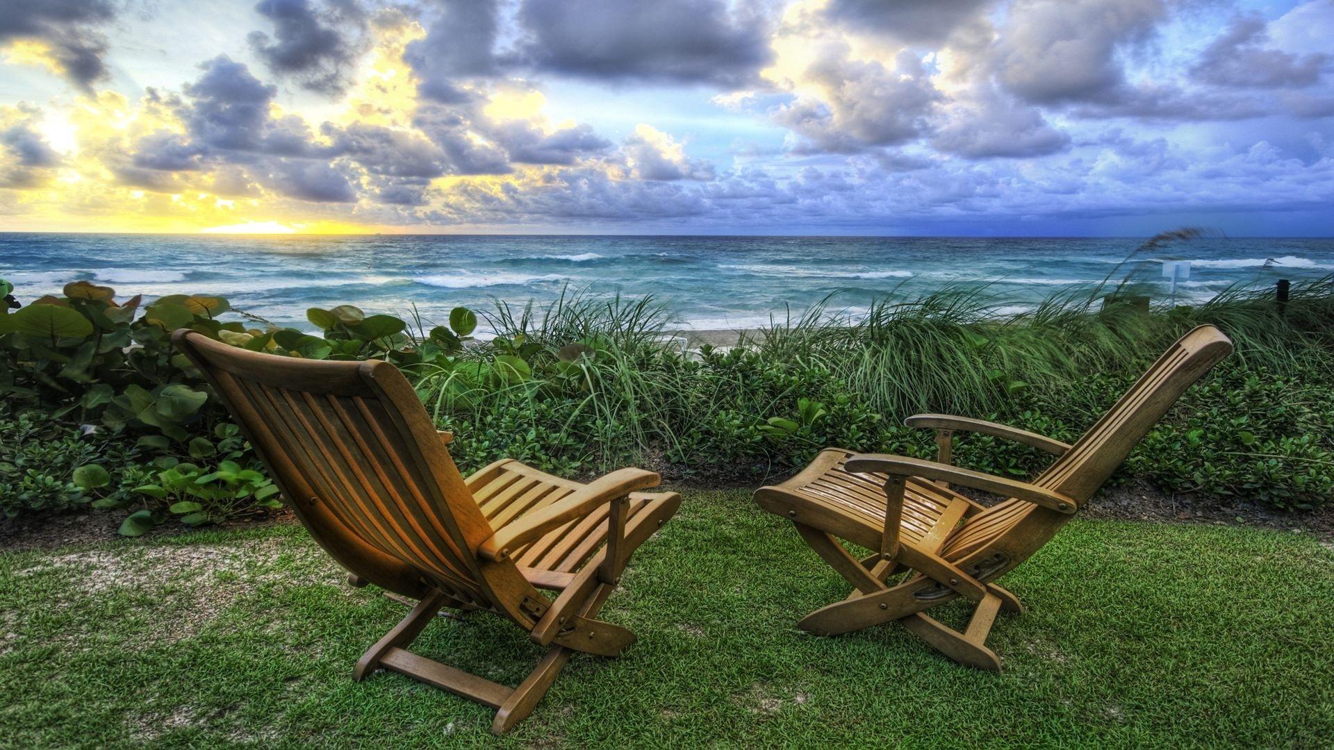 Море, небо, кресло, кресла, зелень, листья, трава, облака обои для рабочего стола, картинки, фото, 1920x1080. | |||||||||||||||||||||||