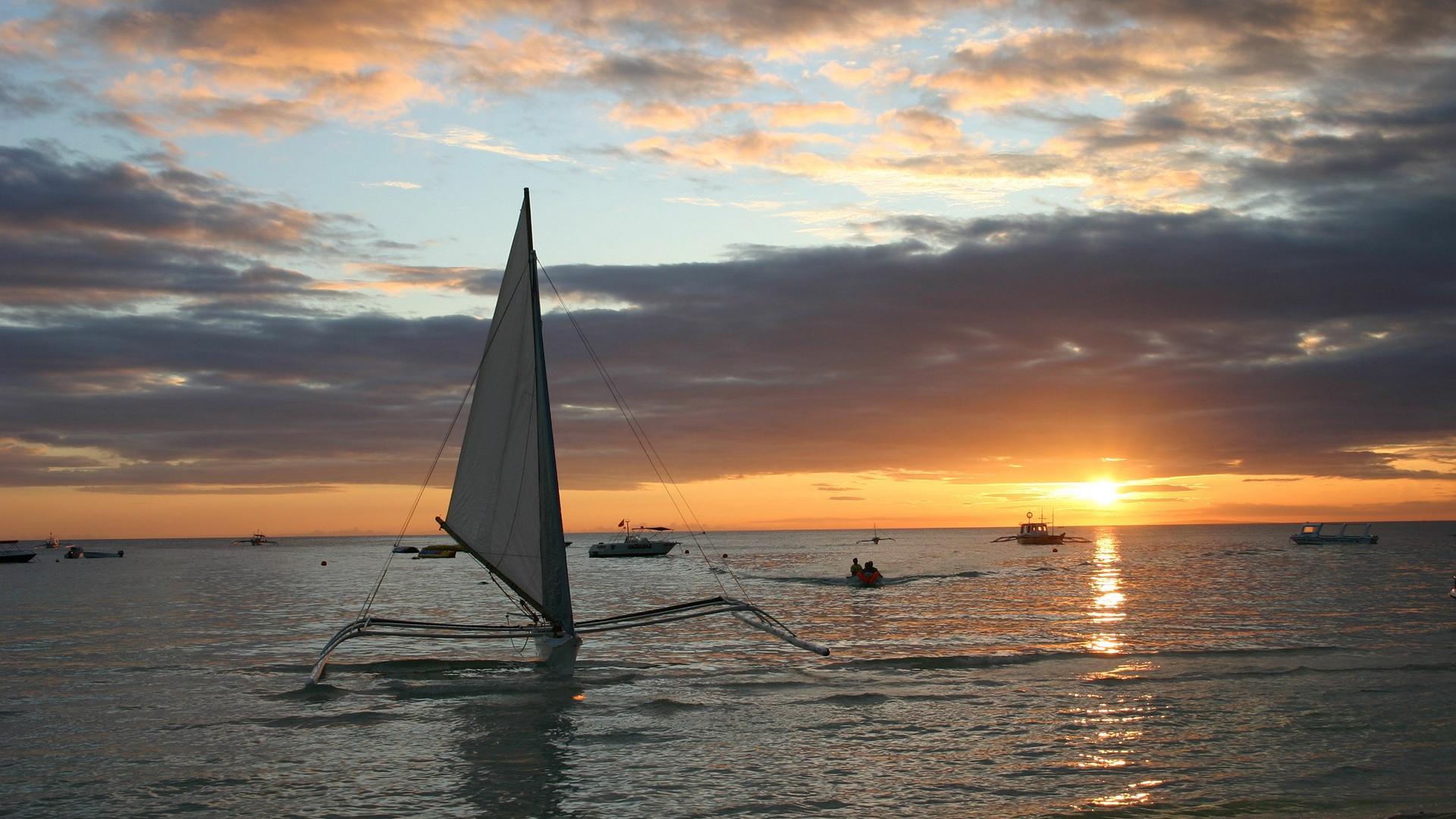 Катамаран на фоне заката обои для рабочего стола, картинки, фото, 1920x1080. | ||||||||||||||||