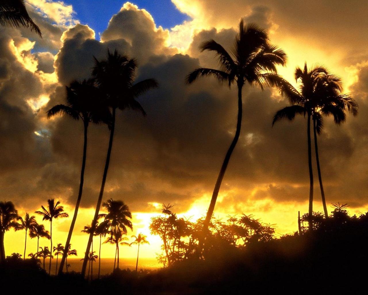 Пальмы, облака, солнце, закат обои для рабочего стола, картинки, фото, 1280x1024. | |||||||||||||||||