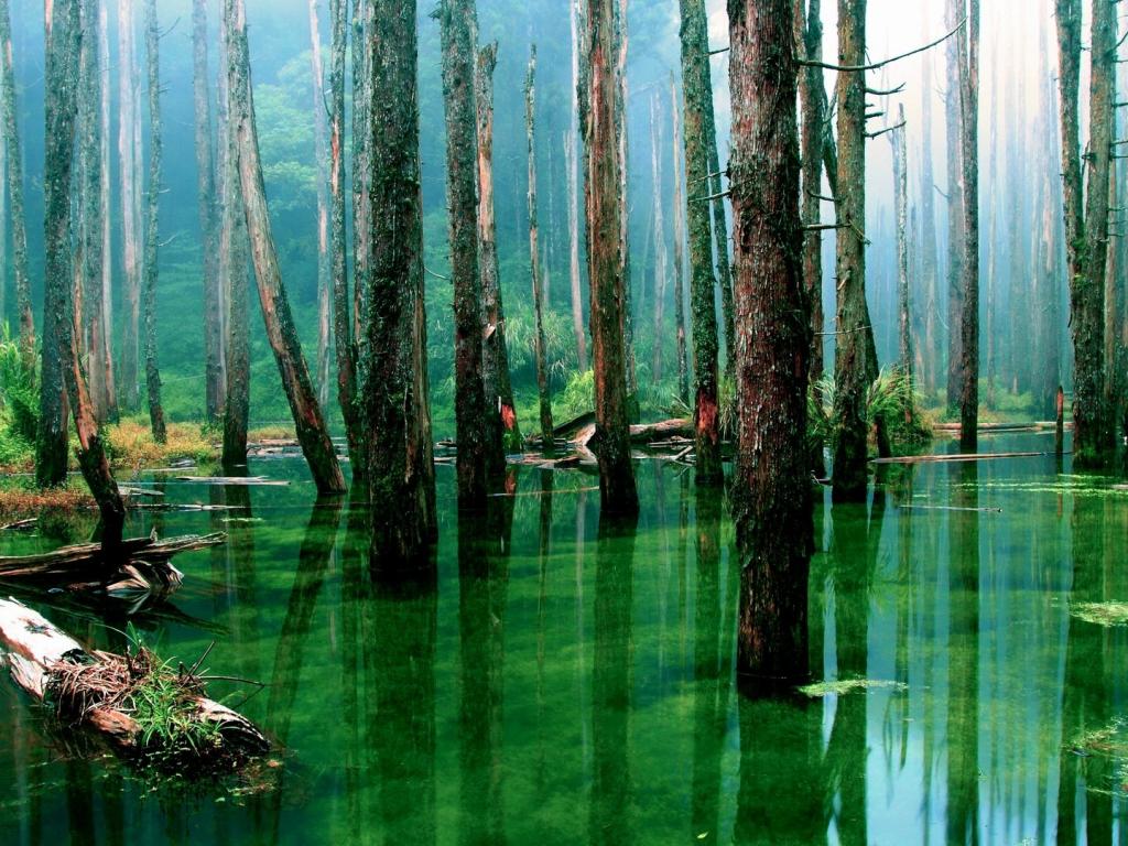 Вода, болото, стволы обои для рабочего стола, картинки, фото, 1024x768. | ||||||||||||||||