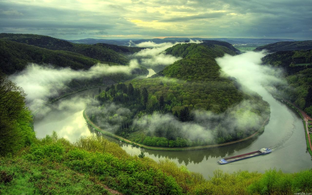 Река, баржа, изгиб, лес обои для рабочего стола, картинки, фото, 1280x800. | ||||||||||||||||