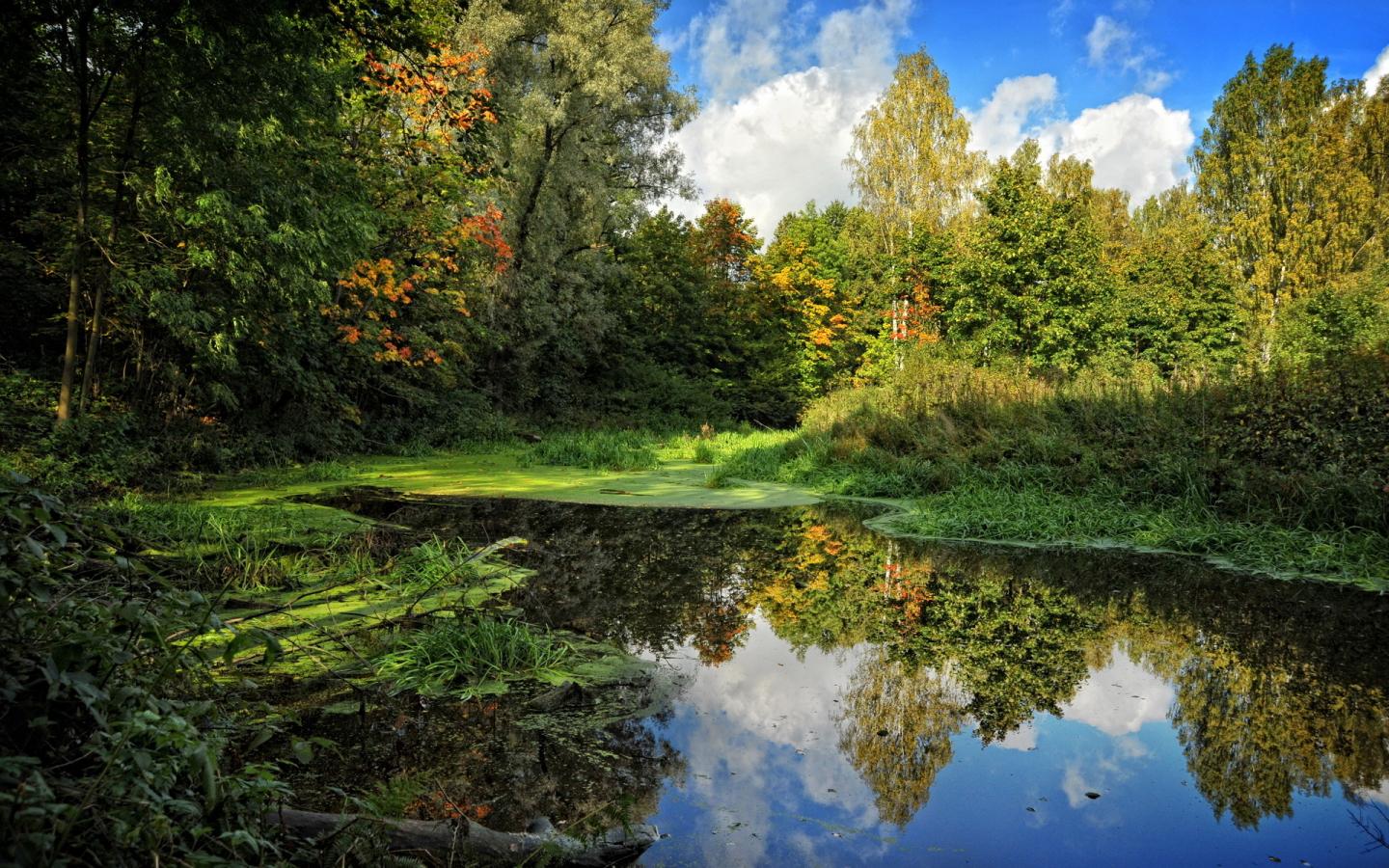 Лето, небо, болото, деревья обои для рабочего стола, картинки, фото, 1440x900. | ||||||||||||||||