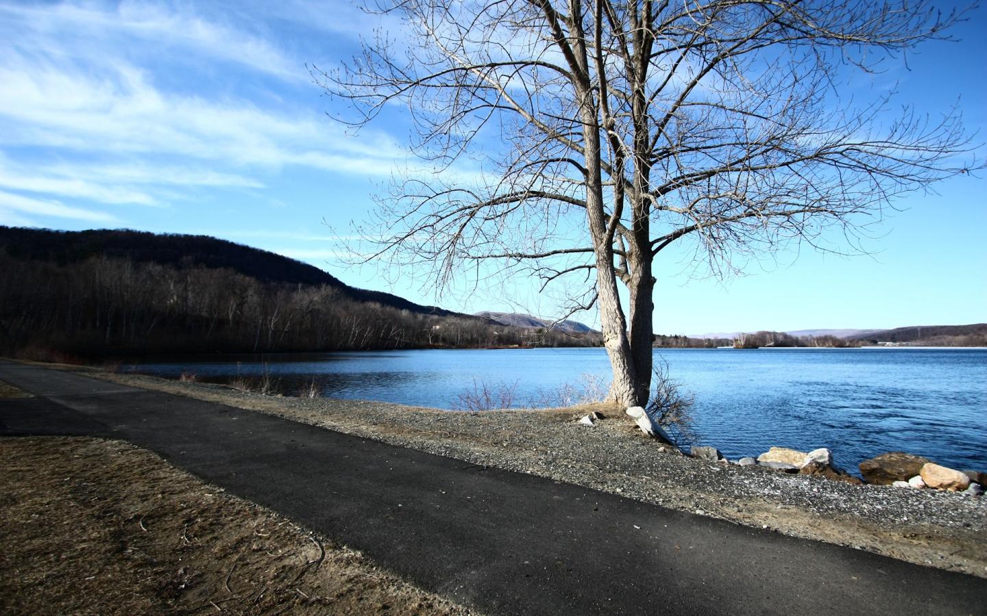 Дорога идущая по берегу красивого озера обои для рабочего стола, картинки, фото, 1440x900. | ||||||||||||||||
