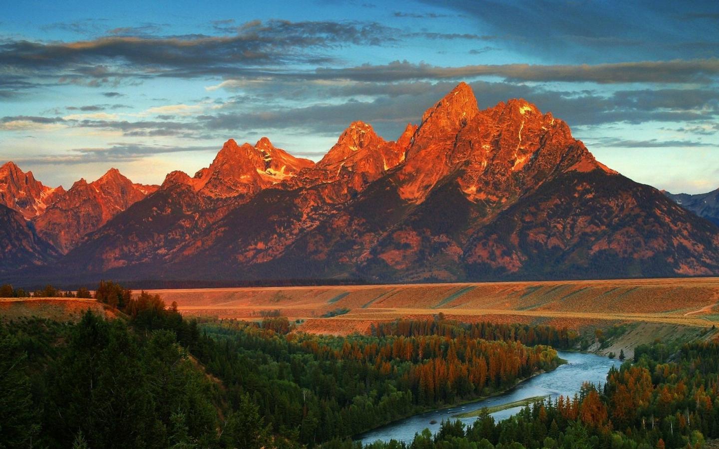 Горы, лес, река обои для рабочего стола, картинки, фото, 1440x900. | ||||||||||||||