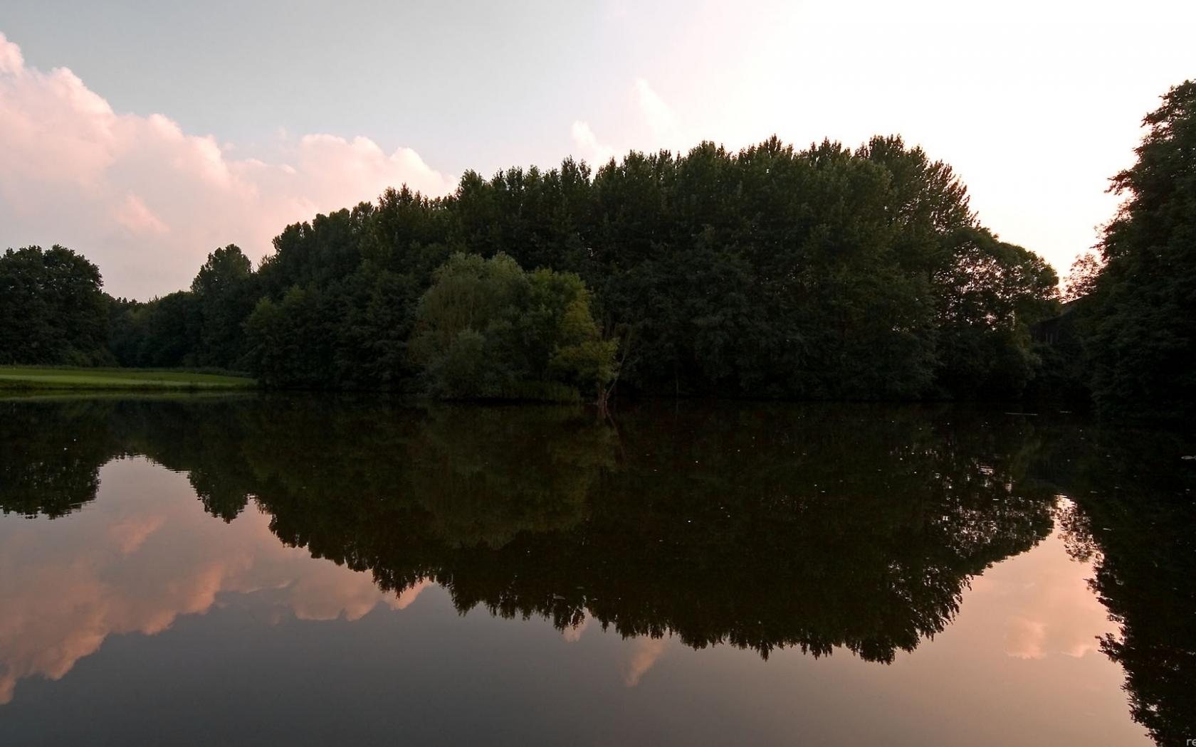 Лес, вода, отражение обои для рабочего стола, картинки, фото, 1680x1050. | ||||||||||||||||