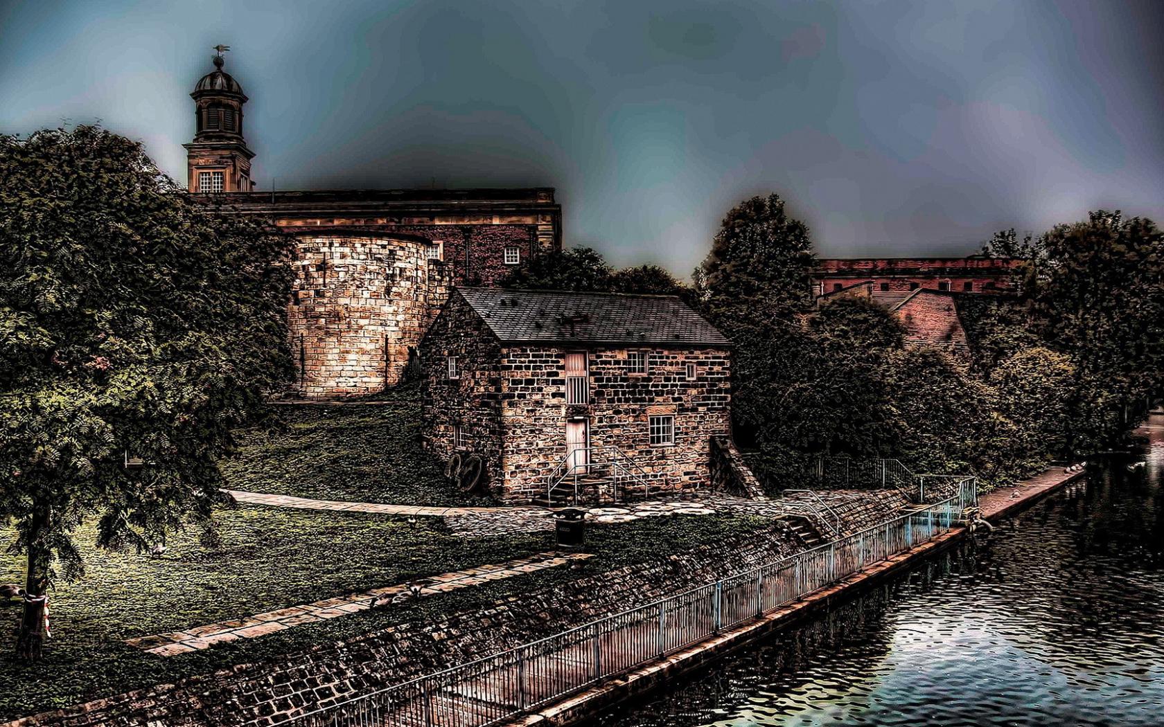 Река, деревья, здания обои для рабочего стола, картинки, фото, 1680x1050. | ||||||||||||||||