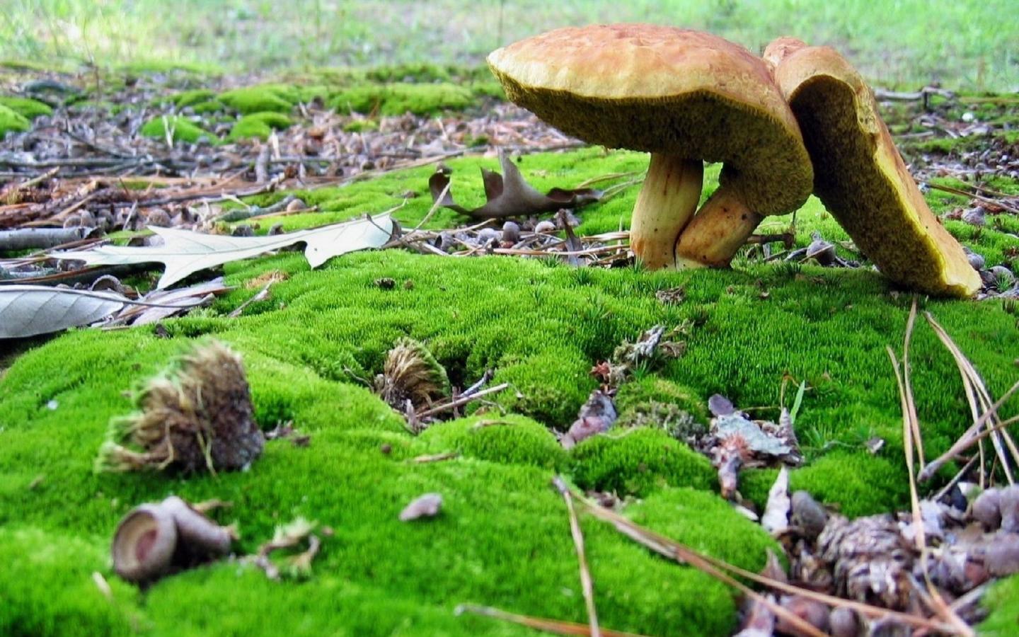 Грибы среди мха обои для рабочего стола, картинки, фото, 1440x900. | ||||||||||||||||