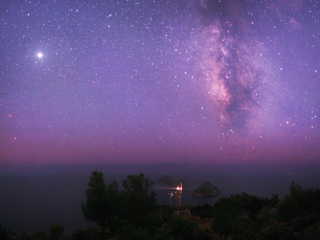 Космос, небо, звезды, млечный путь, море, маяк обои для рабочего стола, картинки, фото, 1024x768. | ||||||||||||||||||||||