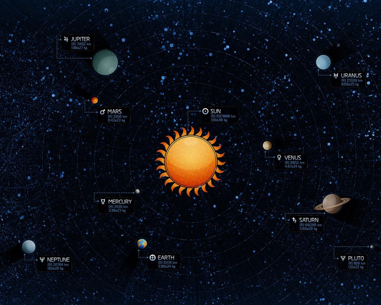 Солнечная система с техническими подробностями обои для рабочего стола, картинки, фото, 1280x1024. | |||||||||||||||||