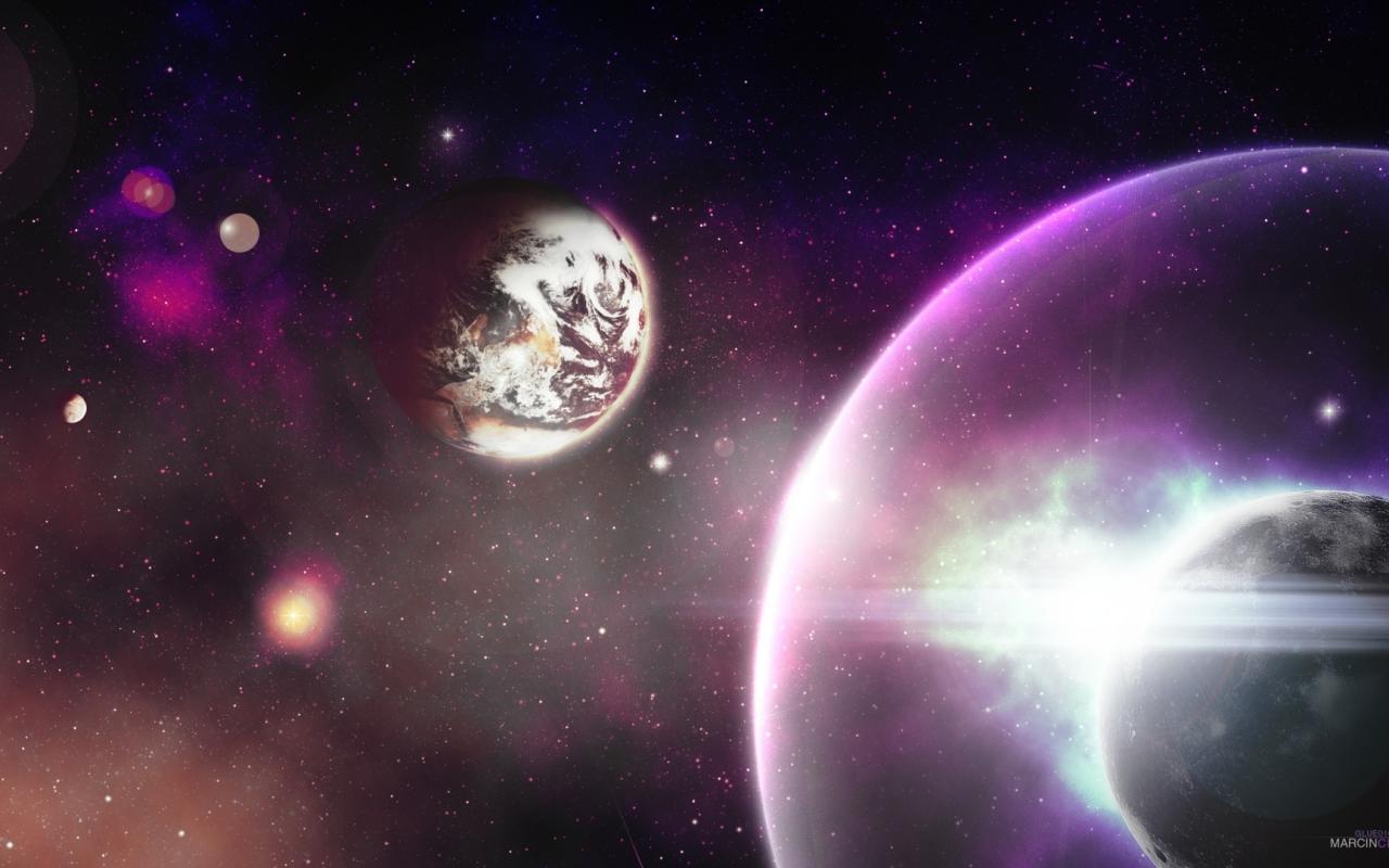 Космос, планеты, звезды, свет, блики обои для рабочего стола, картинки, фото, 1280x800. | |||||||||||||||||