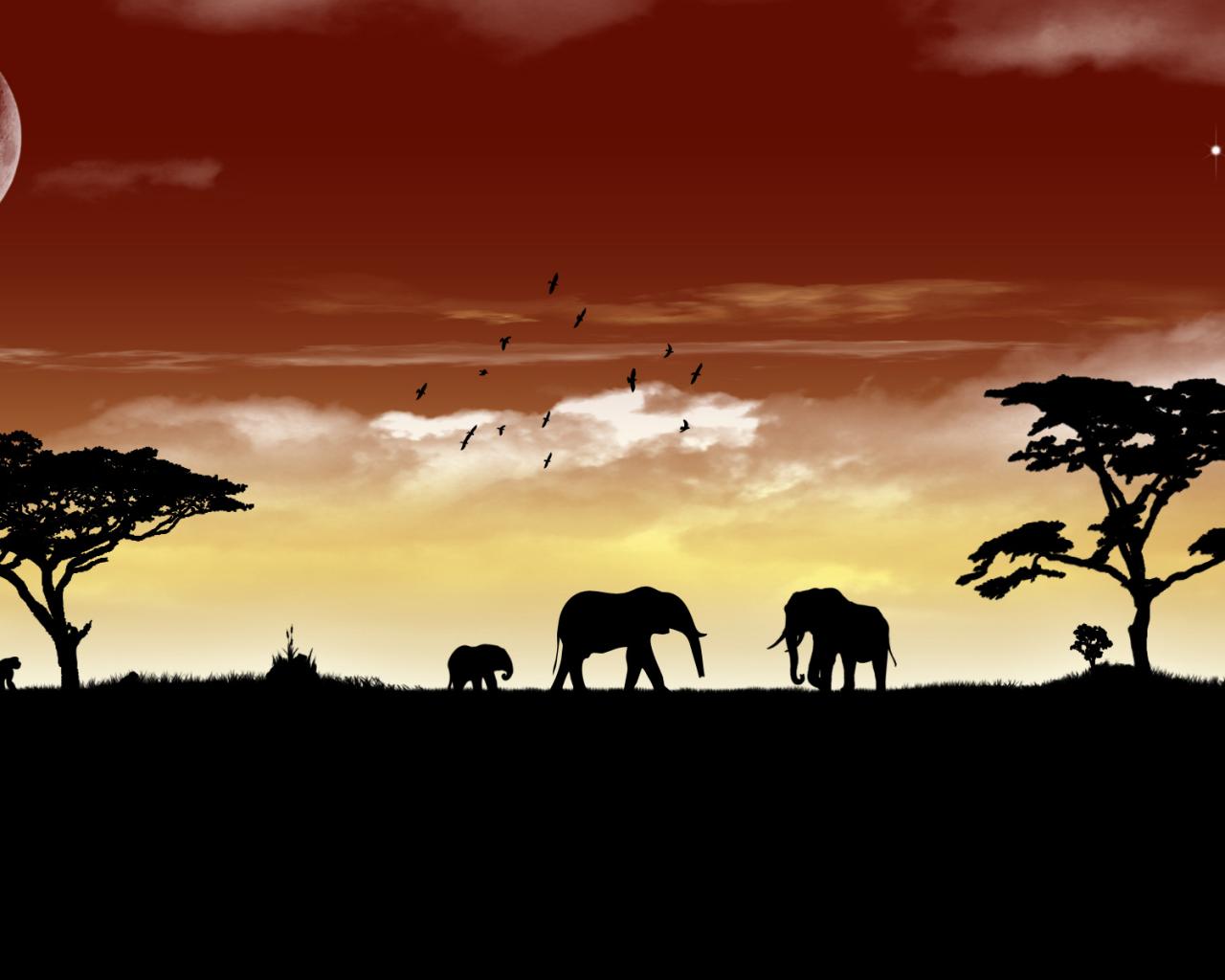 Саванна, пейзаж, животные, звери, небо, слон обои для рабочего стола, картинки, фото, 1280x1024. | ||||||||||||||||||||||
