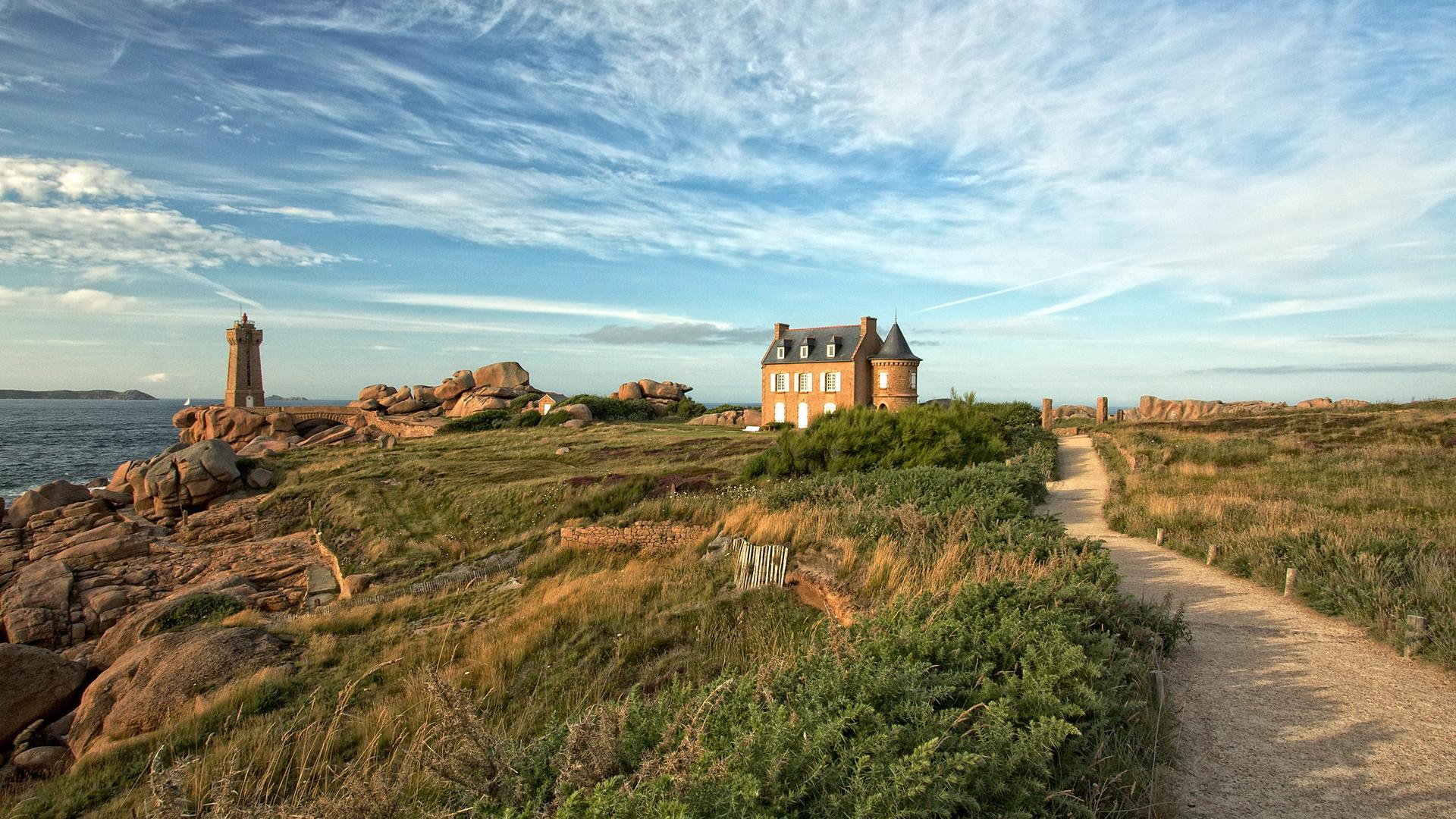 Тропа, дом, маяк, облака обои для рабочего стола, картинки, фото, 1920x1080. | ||||||||||||||||